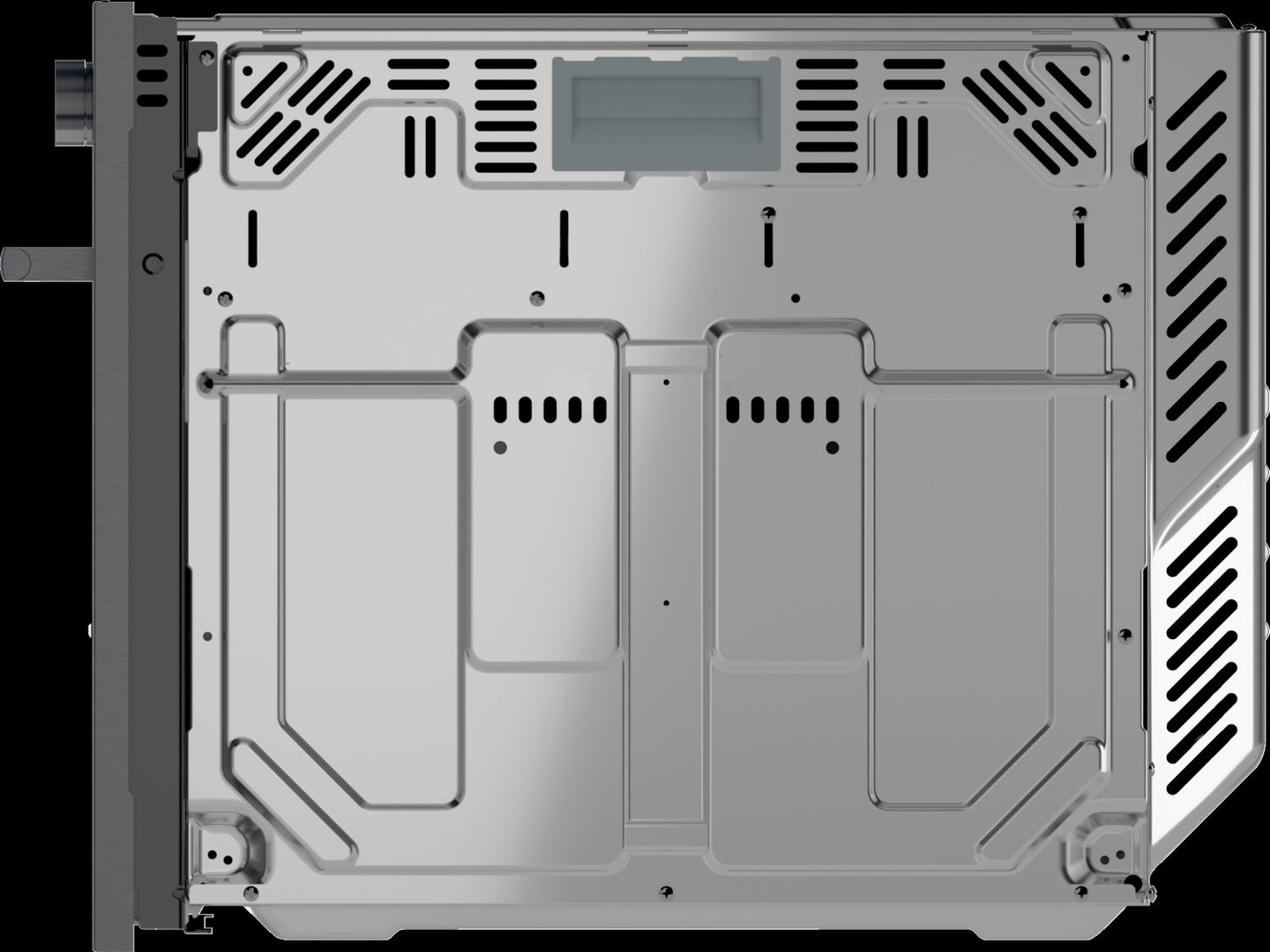 Внутренняя камера устройства имеет объем 50 литров и оснащается 4 уровнями приготовления блюд. Противни и решетки-гриль могут устанавливаться на съемных хромированных направляющих, которые легко очищаются от загрязнений. Высококачественная пиролитическая эмаль и программа очистки паром AquaClean позволяют поддерживать духовку в чистоте с минимальными усилиями.
