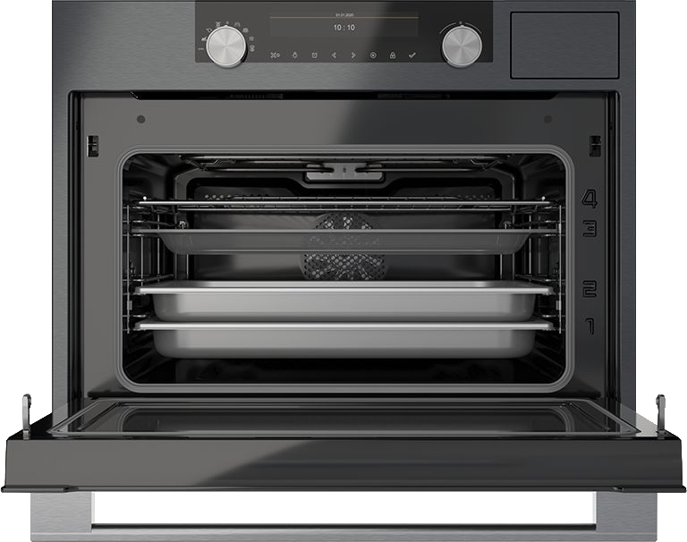 Цветной TFT дисплей позволяет владельцу активировать 20 режимов нагрева, а также 143 автоматические программы. Подогрев посуды WarmPlate, поддержание температуры StayWarm, пошаговое приготовление STEPbake и автоматическое запекание AutoRoast значительно упрощают работу с духовкой. Устройство оснащается как микроволновым излучением Stirrer, так и встроенным парогенератором MultiSteam 360. Таким образом этот комбинированный духовой шкаф может заменить собой сразу 3 устройства.