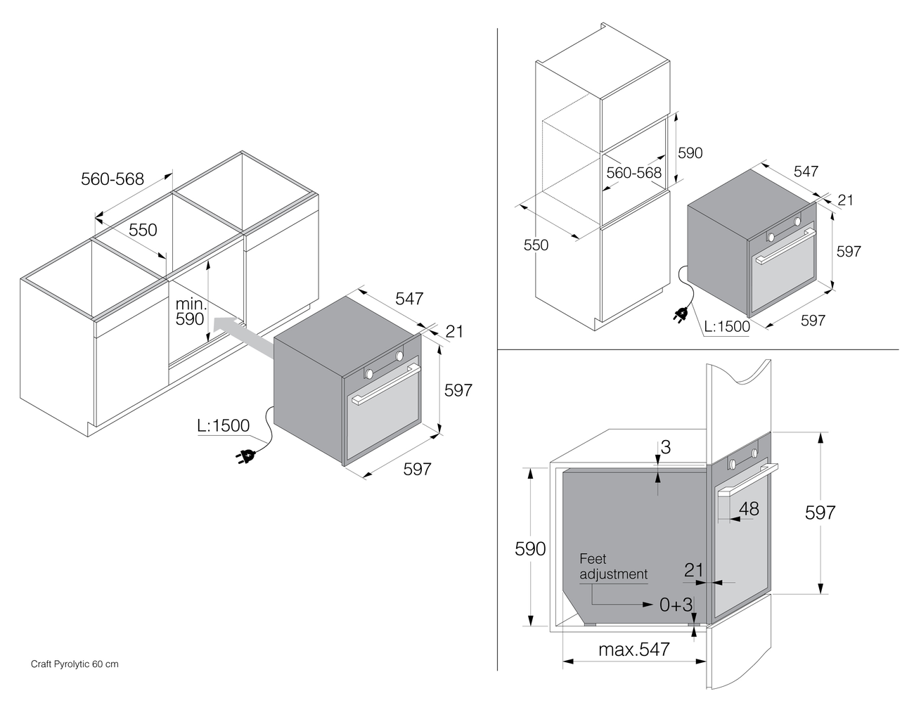 Духовой шкаф габаритами 60 х 60 х 57 см и внутренним объемом 73 литра относится к линейке Craft, отличительными особенностями которой являются стильный дизайн и широкие функциональные возможности. Корпус прибора изготовлен из нержавеющей стали, дверца и панель управления выполнены в черном цвете, камера имеет 5 уровней для готовки.