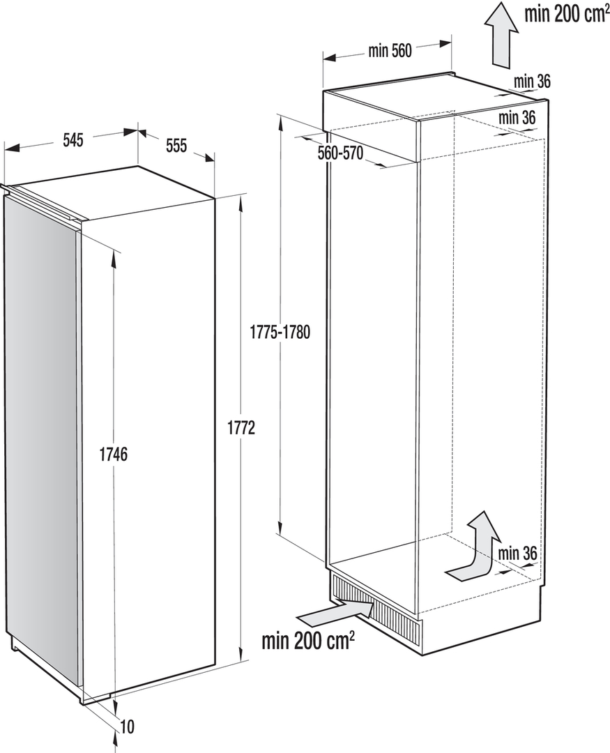Холодильник предназначен для встраивания в кухонный гарнитур, что делает его незаметным и бесшумным – перегородки мебели глушат звук и без того тихо работающего мотора. Прибор имеет перенавешиваемую дверь и петли с плавным закрыванием. Пользователь может самостоятельно переставить дверцу на другую сторону, вне зависимости от места установки механизм защитит устройство от ударов уплотнительной резинки о корпус.