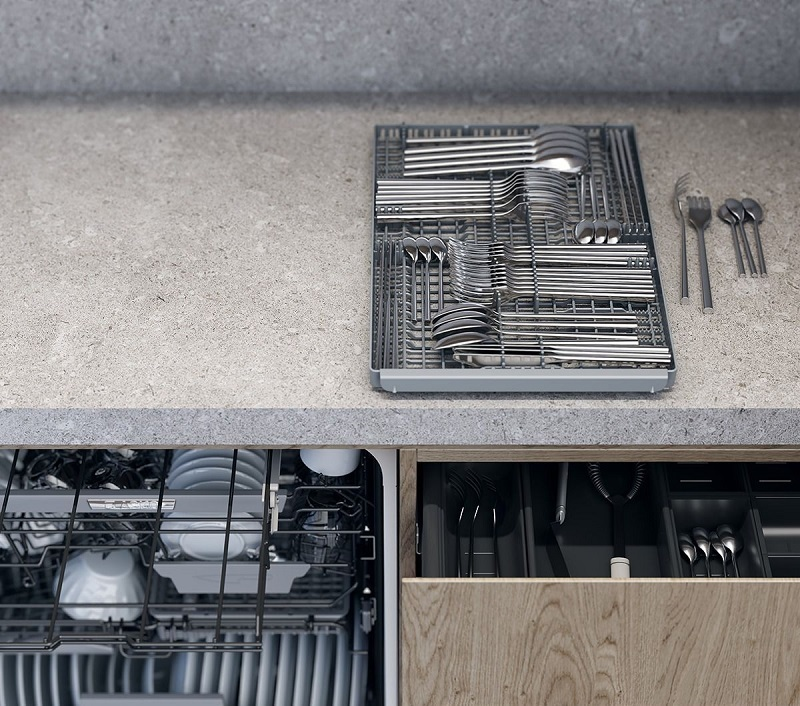 Внутренняя камера изготавливается из нержавеющей стали по технологии 8Steel. Пользователь может загрузить в нее до 17 полных комплектов посуды. Технология распределения воды 11Spray и дополнительные зоны орошения PowerZone JetSpray & WideSpray и PowerZone Cutlery значительно улучшают качество мойки. Уникальная система AquaSafe защищает посудомоечную машину от протечек воды даже в выключенном состоянии.