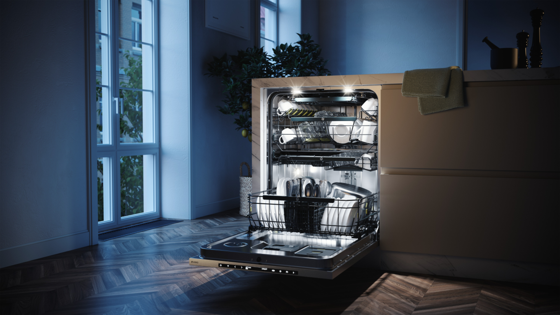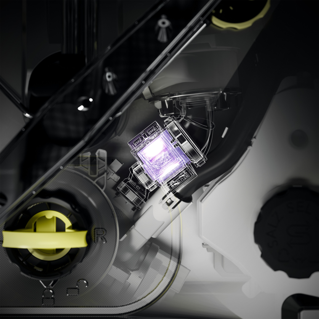 Для размещения посуды применяются 4 корзины Exclusive из нержавеющей стали с нейлоновым покрытием. Вторая корзина может изменять свою высоту даже при полной загрузке. Модель идеально подходит для размещения крупногабаритной посуды и большого количества тарелок. За обеспечения высочайшего качества мойки отвечают системы PowerZone JetSpray, PowerZone Cutlery и PowerZone WideSpray. Владелец может применять до 15 различных программ, которые отличаются температурой и длительностью цикла. Также машина может работать в режиме ExtraHygiene c функцией ультрафиолетовой очистки UV Cleanse.