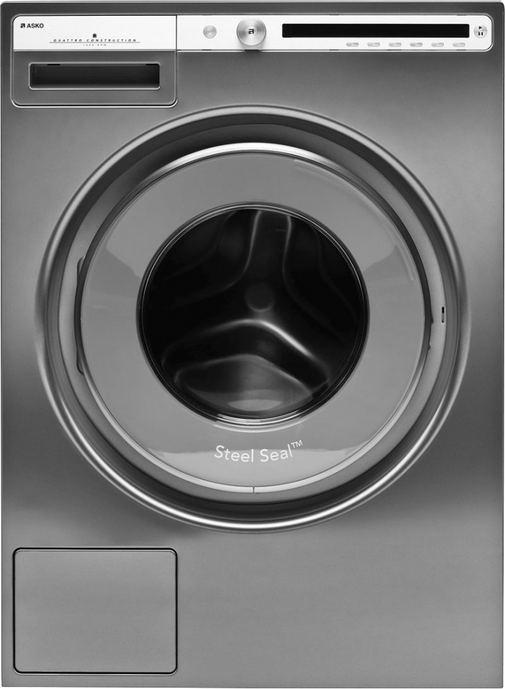 Данная модель стиральной машины выполнена в необычном темно-сером цвете. Инженеры компании ASKO разработали машину, рассчитанную на загрузку до 8 кг сухого белья. Корпус изготавливается из металла с применением люка из закаленного стекла. Также в конструкции используются элементы из экологически чистого пластика. Благодаря уникальной конструкции Quattro срок эксплуатации машины значительно увеличивается. Стоит отметить, что устройство выполнено по технологии SteelSeal - без использования резиновой манжеты люка.