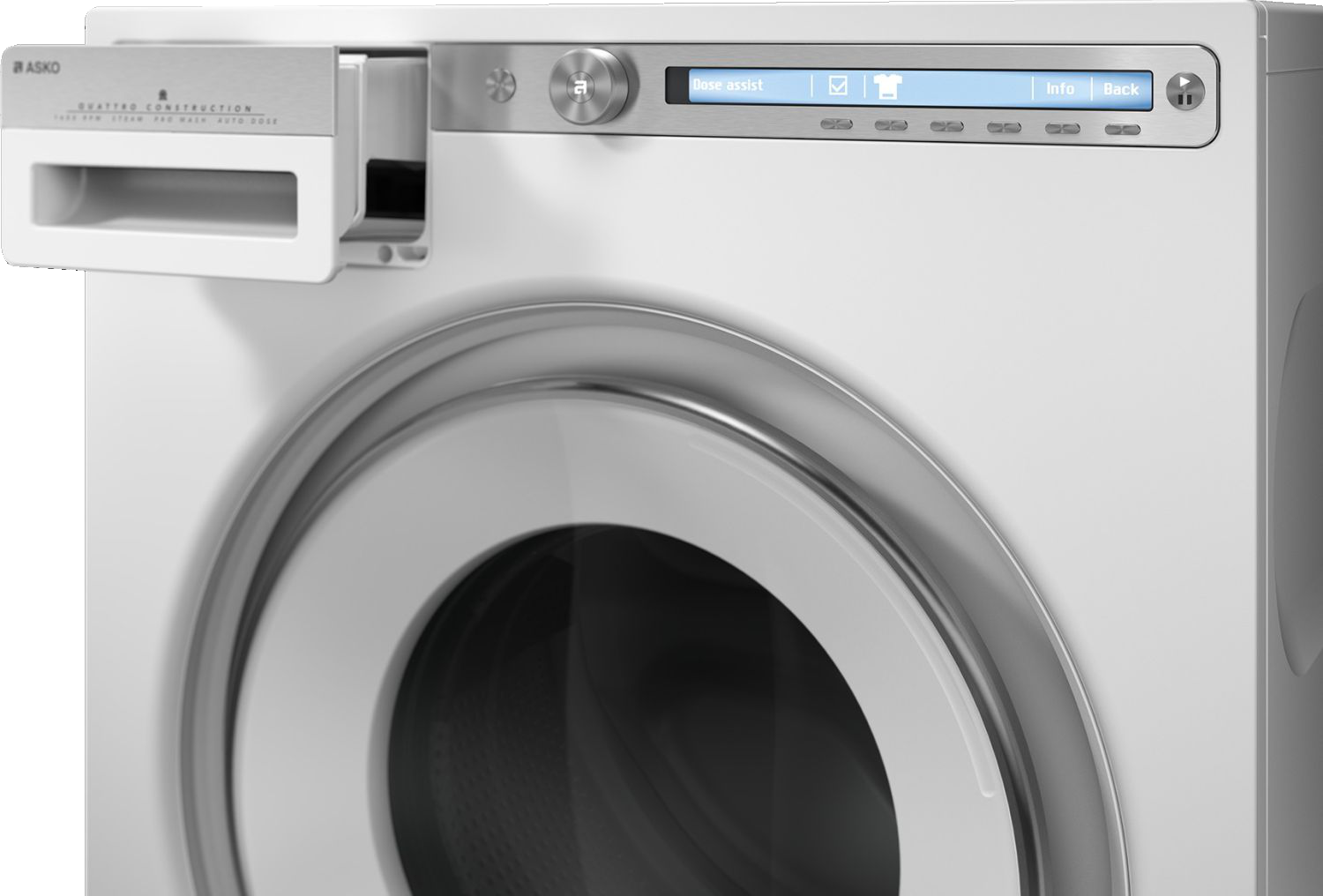 Стиральная машина ASKO оснащена интуитивно-понятным управлением с цифровым дисплеем. В модели есть 23 автоматических программы стирки, а также возможность создать индивидуальный режим. Отложенный старт позволяет запустить цикл через интервал времени от 30 минут до 24 часов. Кроме выбора программы, пользователю доступно 5 режимов запуска: нормальный, экономичный, гипоаллергенный, быстрый, интенсивный. Есть удобная функция автоматической дозировки моющих средств Dose assist. Стиральная машина сделана из экологичных материалов с повышенным запасом прочности.