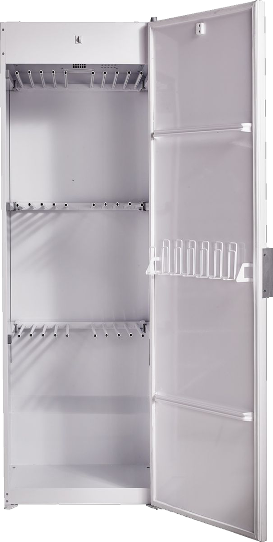 В отличие от сушильных машин, шкаф быстрее сушит и потребляет меньше электроэнергии. Устройство предназначено для высушивания одежды, обуви и головных уборов. Эффективную, экономичную и безопасную работу прибора обеспечивают автоматические программы сушки. В зависимости от требуемой степени высушиваемости можно выбрать режимы: сухое, сухое нормальное и экстрасухое. Скорость удаления влаги составляет 17,5 г/мин, каждую минуту осуществляется двухсекундное проветривание, благодаря чему камера защищается от перегрева.