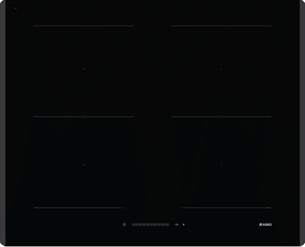Эта необычная модель черного цвета отличается оригинальным исполнением. Первое, на что обращаешь внимание – квадратная форма конфорок. Всего у индукционной варочной панели 4 зоны с бустером, все абсолютно одинаковые по размеру – 200 х 200 мм. А вот характеристики у этих конфорок отличаются: одна пара обеспечивает мощность нагрева в диапазоне 1,6-1,85 кВт, а две других – 2,1-3 кВт. Таким образом создается две объединенных зоны, в которых одна конфорка может усиливать другую при помощи фирменной технологии Asko – Bridge Induction. Это очень удобно, если вы готовите блюдо в утятнице или другой посуде больших размеров.