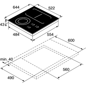 - интуитивно понятная сенсорная панель управления, отображающая параметры работы каждой индукционной конфорки;