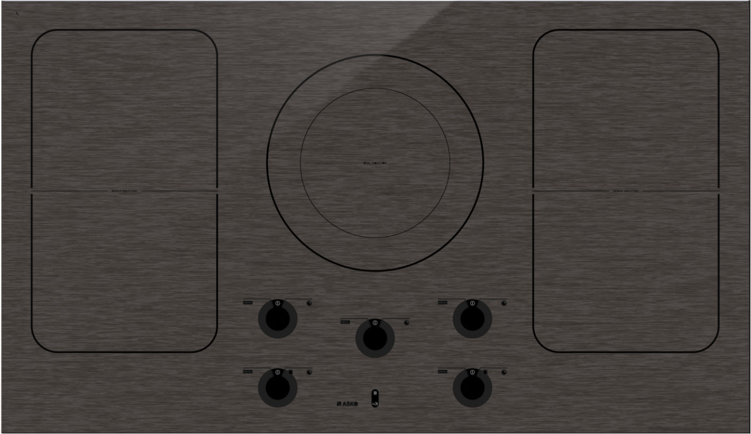 Большая индукционная панель на 5 конфорок с оптимальным функционалом. Интенсивность нагрева регулируется по шкале от 1 до 13, четыре зоны могут объединяться в 2 большие за счет технологии Bridge Induction – одной из разработок компании Аско. Мощность 4 стандартных конфорок достигает 3,7 кВт, а крупной центральной – 5,5 кВт. Если хотите знать больше об этой модели, пройдите по этой ссылке на обзор.