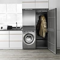 Использование техники позволяет избавиться от утомительной процедуры развешивания белья на балконе или батарее. Сушильные шкафы Asko имеют высоту от 170 до 184 см, ширину и глубину 60 и 64 см соответственно. Техника оснащена несколькими рядами выдвижных вешалок, способных разместить столько же вещей, сколько может поместиться на бельевой веревке до 16 метров. Автоматические программы сушки используются не только для одежды, но и обуви, для которой предусмотрены специальные полки.