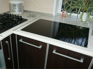 Индукционная поверхность устанавливается в заранее подготовленную в столешнице нишу. Посадочное отверстие изготавливается при помощи лобзика по разметке с технологическими зазорами на монтаж. После установки прибор необходимо проклеить силиконом. На этапе монтажа следует предусмотреть место под вытяжку, которая должна располагаться соосно прибору для готовки.