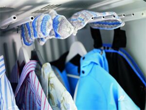 В стандартном сушильном шкафу помещается примерно столько же одежды, сколько можно развесить на 16-метровой бельевой веревке. Но есть один серьезный плюс: вы сможете разложить по корзинам мелочи, которые обычно сложно сушить на веревке, а также обувь и аксессуары.